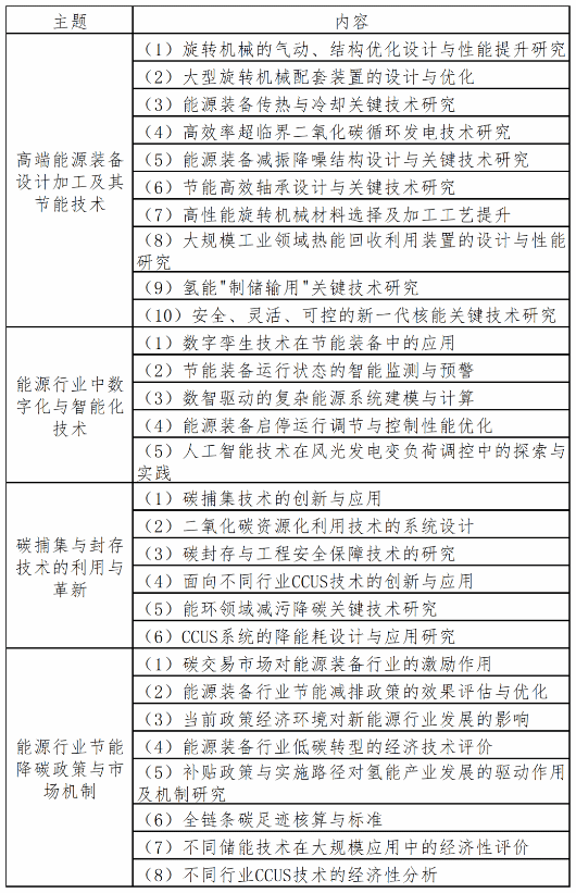 本次产业赛道旨在挖掘和培育能源行业节能减排、低碳发展领域的创新项目。参赛者需围绕“高端能源装备设计加工及其节能技术”“能源行业中数字化与智能化技术”“碳捕集与封存技术的利用与革新”“能源行业节能降碳政策与市场机制”四大主题(具体见下表)进行深入研究和实践,提交具有创新性和实用性的作品。