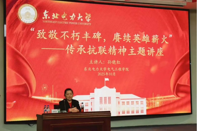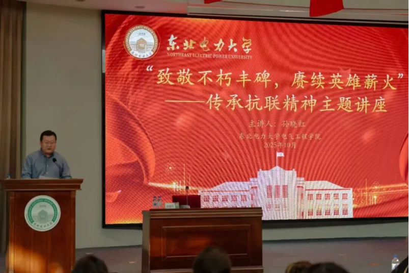 随后,孙晓红老师为与会全体师生做了《传承抗联精神 汲取奋进力量》的精彩报告。她以真挚的情感、大量详实的珍贵史料向全体师生展现了宋铁岩将军于中华民族危难之际挺身而出,投身抗日救亡伟业,无畏艰险,带领东北抗联义士转战白山黑水之间,与日寇戮力血战的生动画面。一个个感人的英雄故事,一曲曲气壮山河的民族赞歌,无不引发全场师生的强烈共鸣。大家纷纷表示:一定要继承东北抗联先烈的遗志,以东北抗联精神为精神旗帜和行动指引,踔厉奋发、勇毅前行,以自身的实际行动赓续红色血脉,强化使命担当。为国家能源电力事业发展贡献力量。