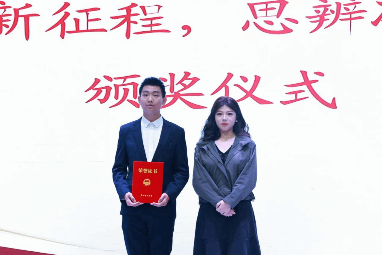 经评委团综合评审,正方代表队荣获团体优胜奖,刘洪宇为正方颁发奖项。侯芳泽为荣获“最佳辩手”称号的新能源254班李启硕颁奖,并对其个人的思辨能力与现场风采给予了高度认可。