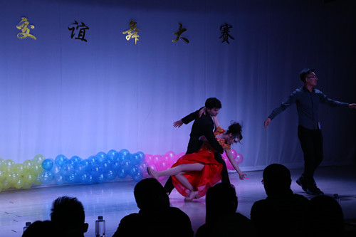 参赛选手们三队一组依次闪亮登场,女生身着华丽长裙尽显曼妙身材,男生则身穿帅气西装尽显绅士风度。随着抒情音乐的响起,选手们踩着节拍,动作优雅舒缓,女生气质典雅、舞步飘逸,男生帅气大方、舞步轻快。当抒情音乐戛然而止,热烈激情的音乐响起时,选手们立刻改变舞风,时而出现的旋转舞步、托举旋转、劈叉下腰赢得了全场观众雷鸣般的欢呼与掌声。期间穿插的舞蹈、歌曲、健美操节目也使得全场比赛高潮迭起,绚丽的灯光与动感的音乐让同学们在这一晚享受到了无与伦比的视听盛宴。最终我院姚志、黄慧玉获得了二等奖,郑璐、王振明获得了最佳搭档奖,郑莎、张博文获得了最佳人气奖,李艳秋、王文瀚获得了最佳舞台奖。能源与动力工程学院获得了优秀组织奖。