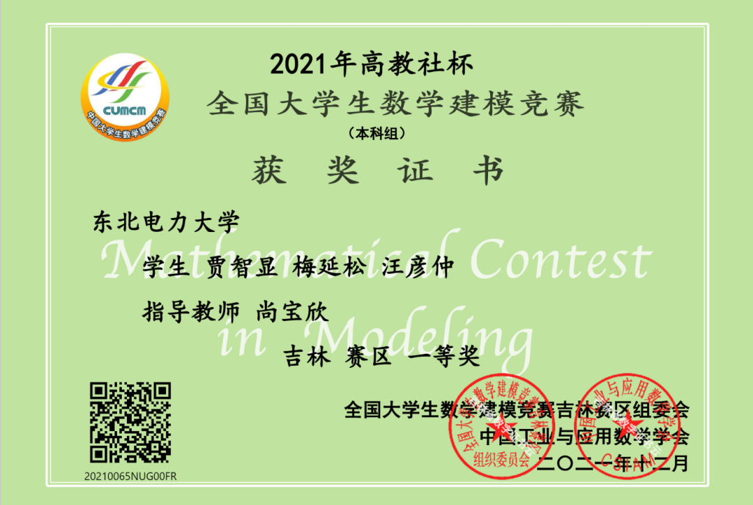 纸上得来终觉浅,绝知此事要躬行。学业之余他也投身到学科竞赛和学生工作中来,锻炼专业技能,提升综合能力。他曾参加数学建模竞赛、英语竞赛等多项比赛,在全国大学生数学建模竞赛中,通过模拟演练等层层选拔,作为2021年仅有三组大一学生参赛的队伍,最终获得了省级一等奖的成绩。此外曾获得全国大学生电工数学建模竞赛全国一等奖等7项竞赛奖励。他将在扎实专业知识的基础上进行更深入的思考和更广泛的尝试,不断开拓学术视野,积累学术经验。
