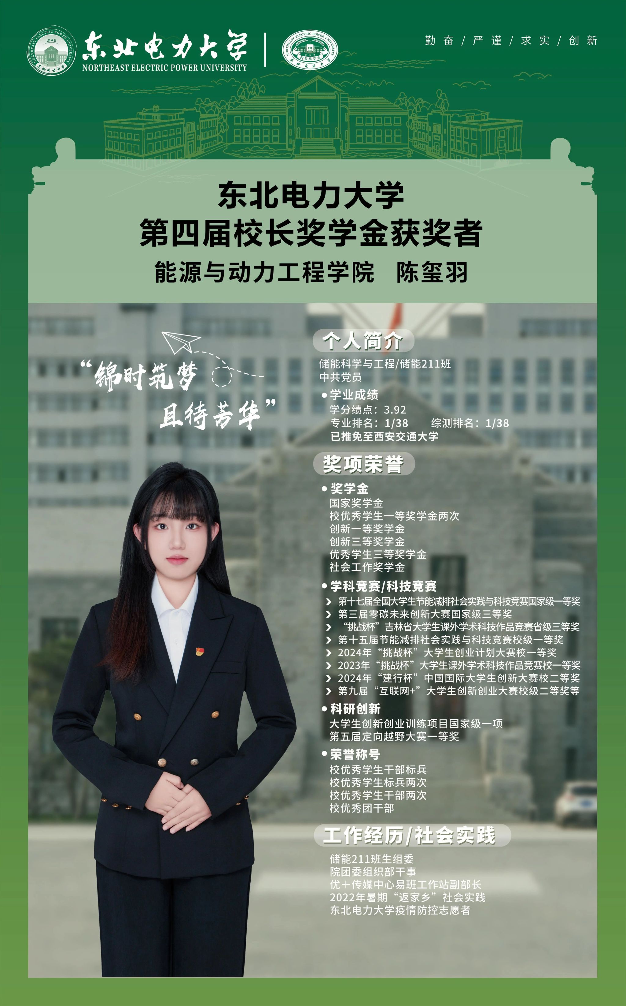 第四届校长奖学金获奖者——陈玺羽